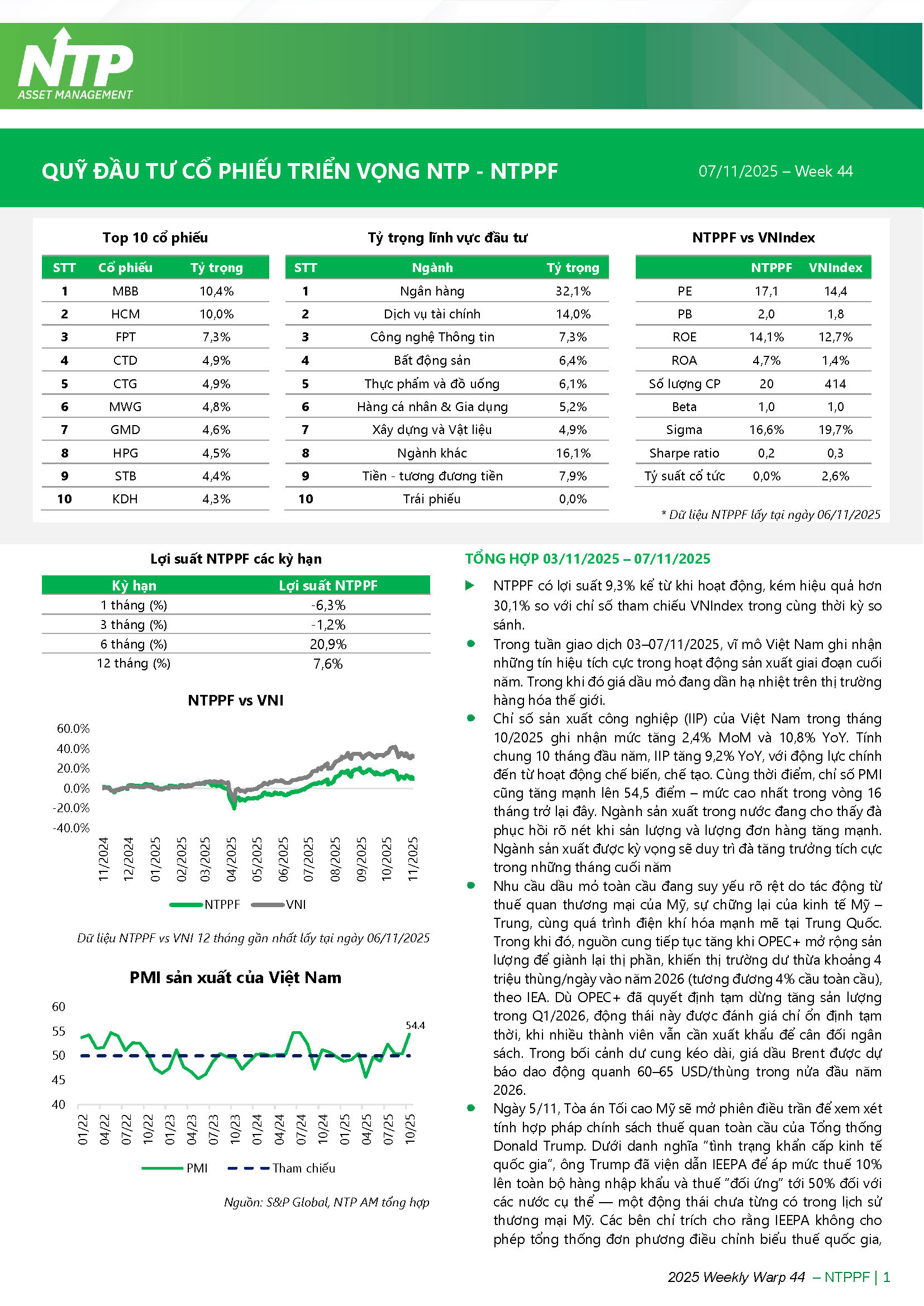 Quỹ đầu tư cổ phiếu triển vọng NTP (NTPPF) - Tổng hợp 03/11/2025 – 07/11/2025
