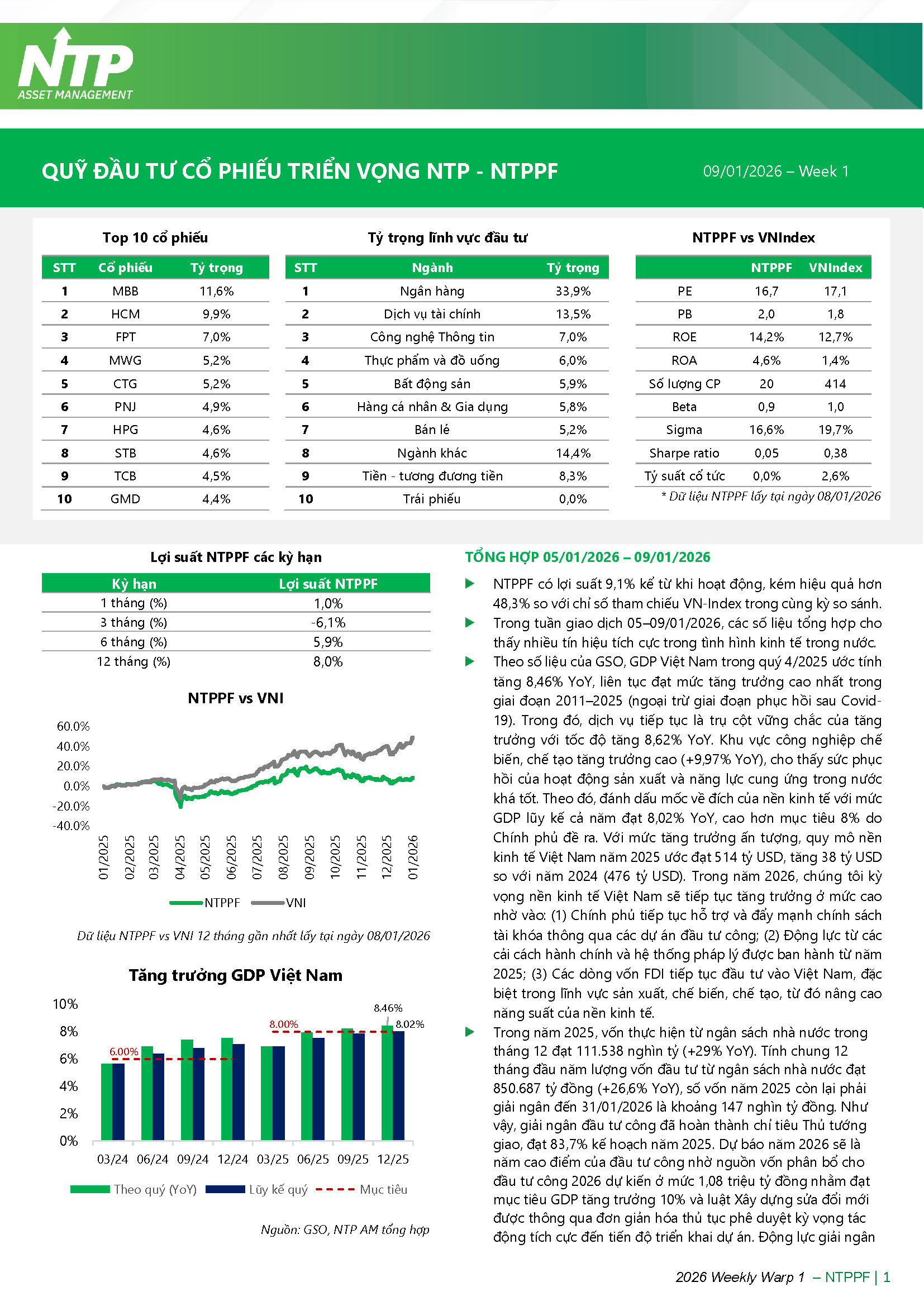 Quỹ đầu tư cổ phiếu triển vọng NTP (NTPPF) - Tổng hợp 05/01/2026 – 09/01/2026