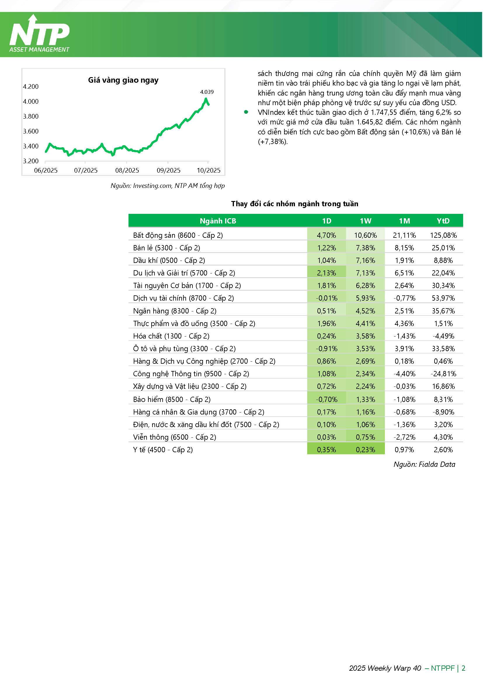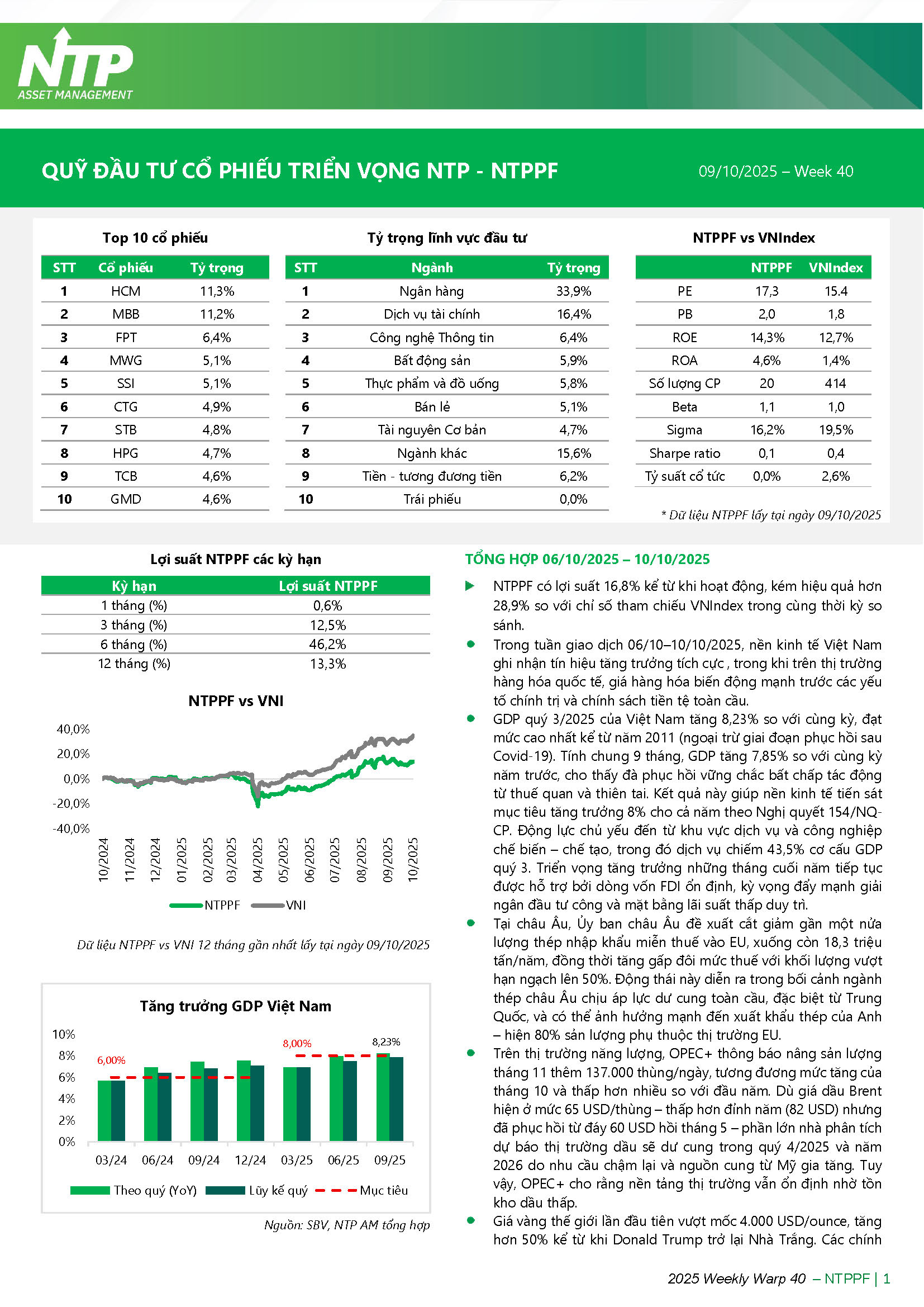 Quỹ đầu tư cổ phiếu triển vọng NTP (NTPPF) - Tổng hợp 06/10/2025 – 10/10/2025