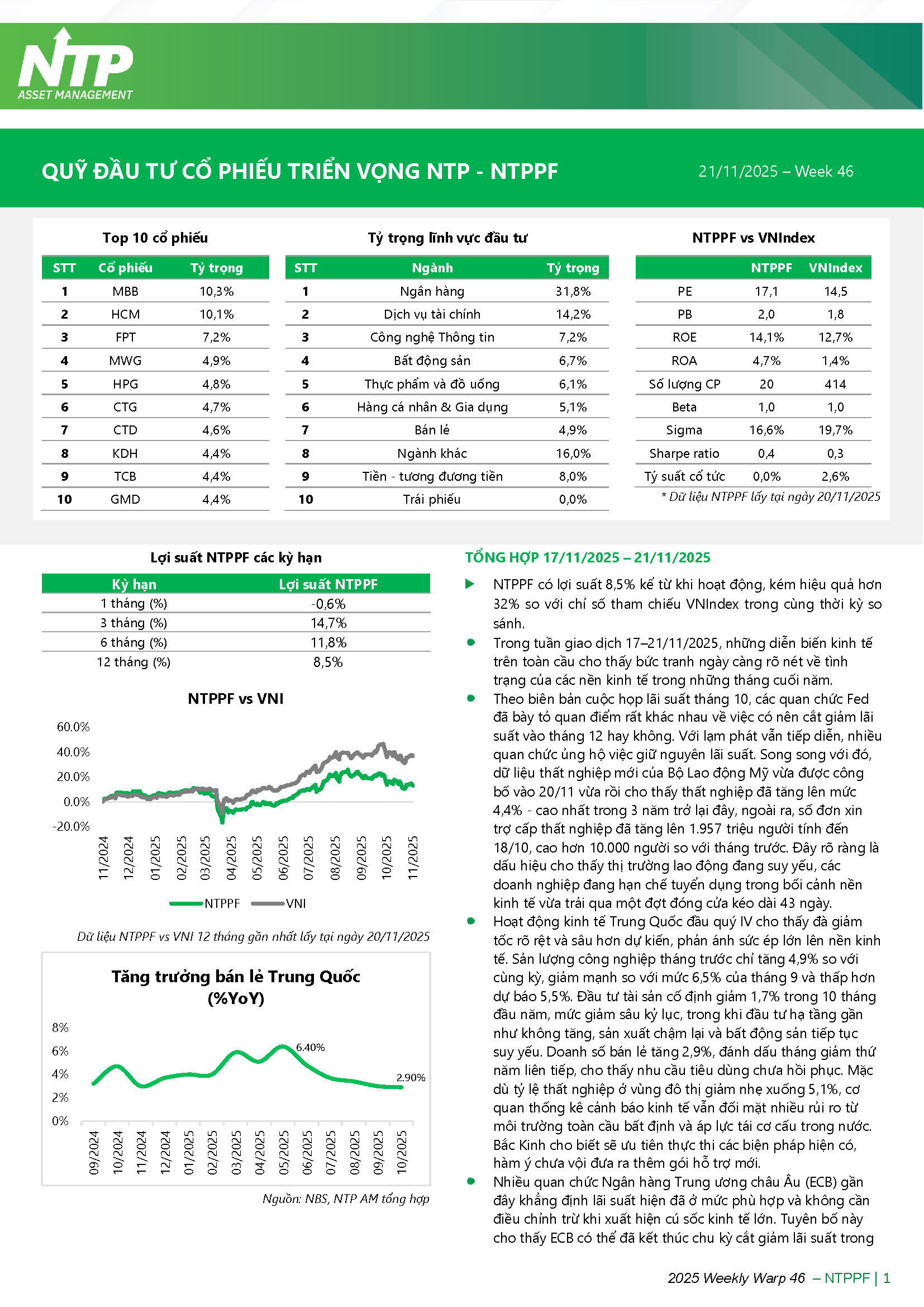 Quỹ đầu tư cổ phiếu triển vọng NTP (NTPPF) - Tổng hợp 17/11/2025 – 21/11/2025