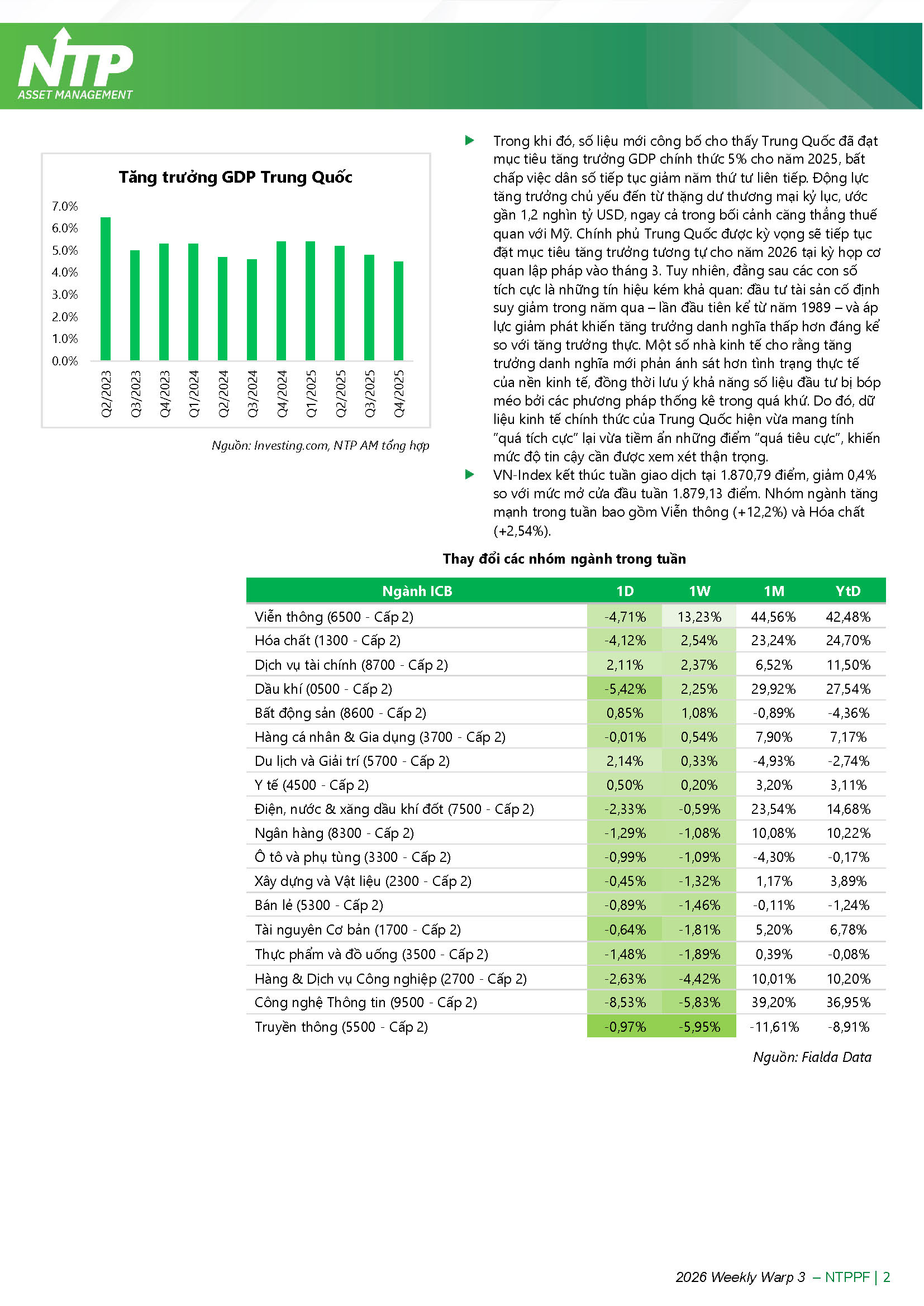 Quỹ đầu tư cổ phiếu triển vọng NTP (NTPPF) - Tổng hợp 19/01/2026 – 23/01/2026