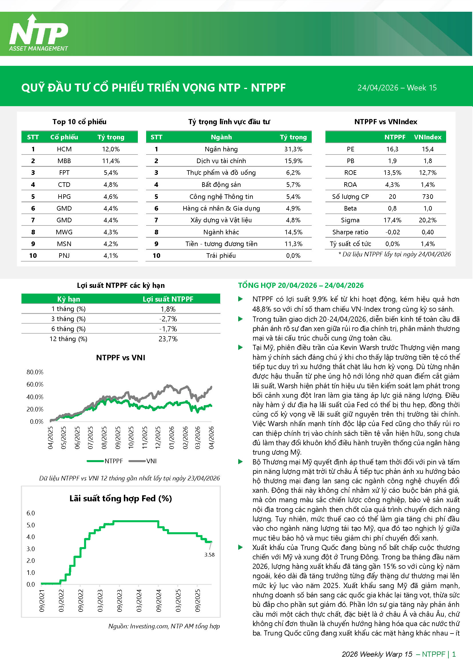 Quỹ đầu tư cổ phiếu triển vọng NTP (NTPPF) - Tổng hợp 20/04/2026 – 24/04/2026