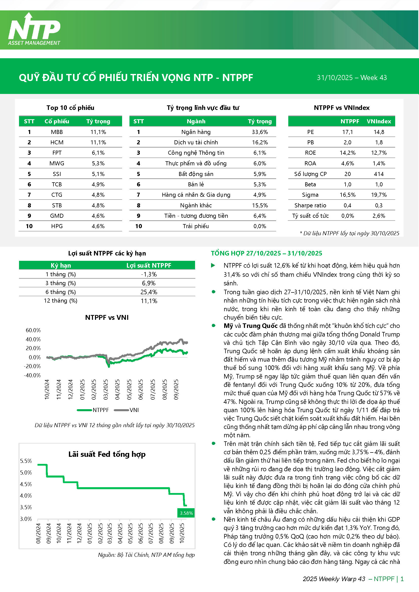 Quỹ đầu tư cổ phiếu triển vọng NTP (NTPPF) - Tổng hợp 27/10/2025 – 31/10/2025