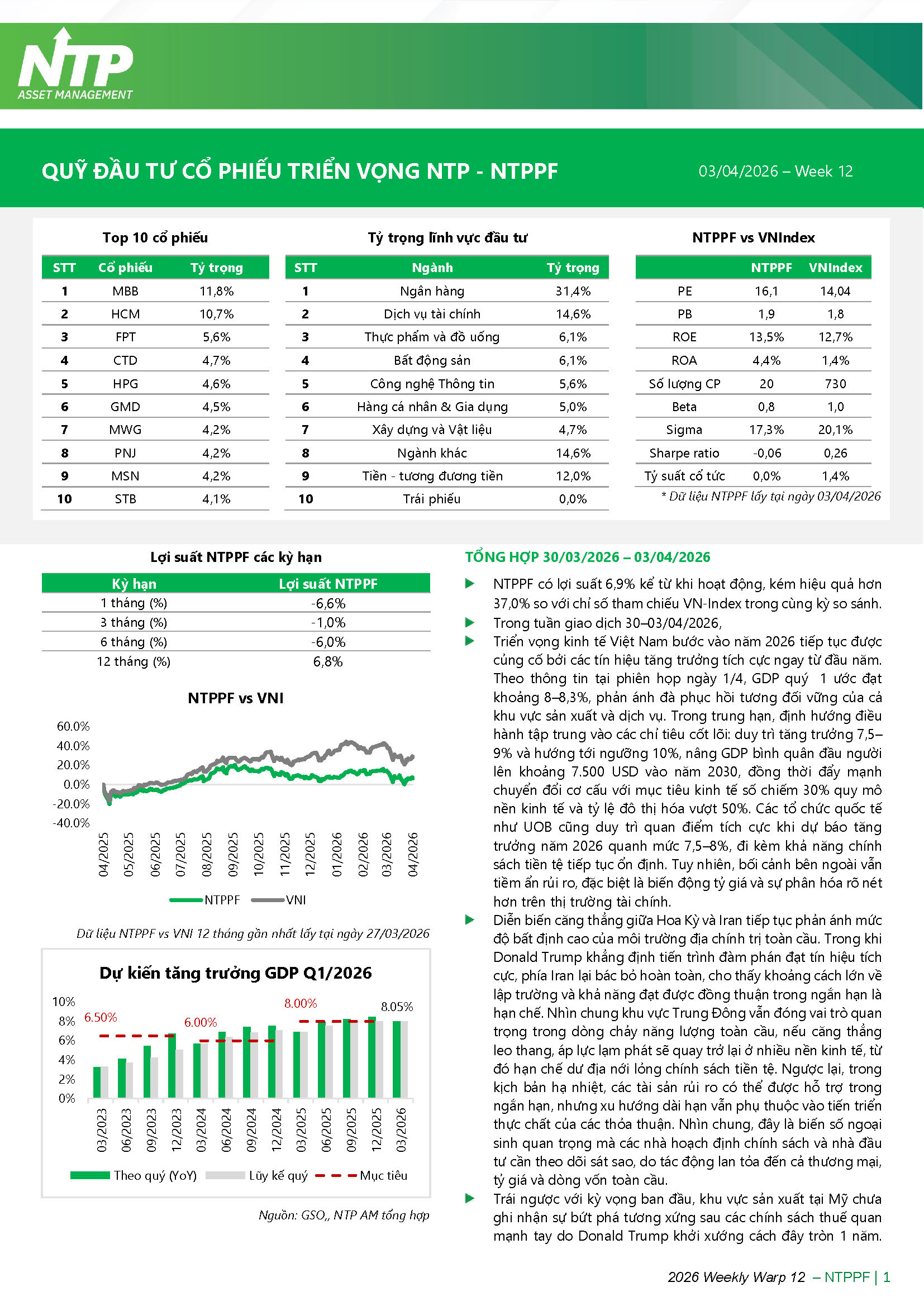 Quỹ đầu tư cổ phiếu triển vọng NTP (NTPPF) - Tổng hợp 30/03/2026 – 03/04/2026